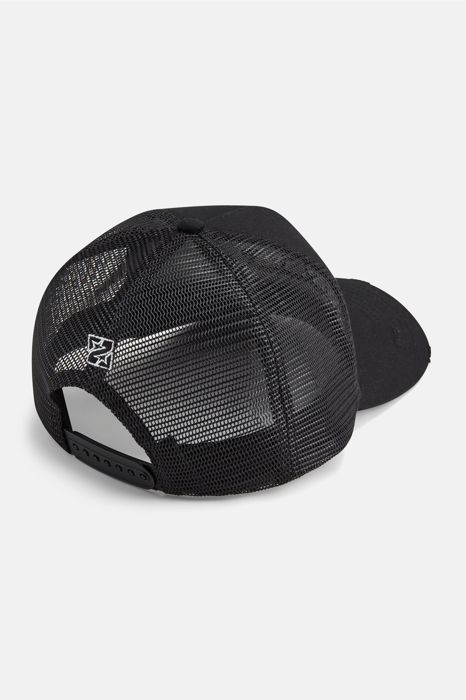 Black snapback cap with 'Believe' in Arabic text 3D embroidered onto front panel with black and white outline stitching. Featuring hand distressed peak, mesh back and Zoron Z Star logo embroidery.