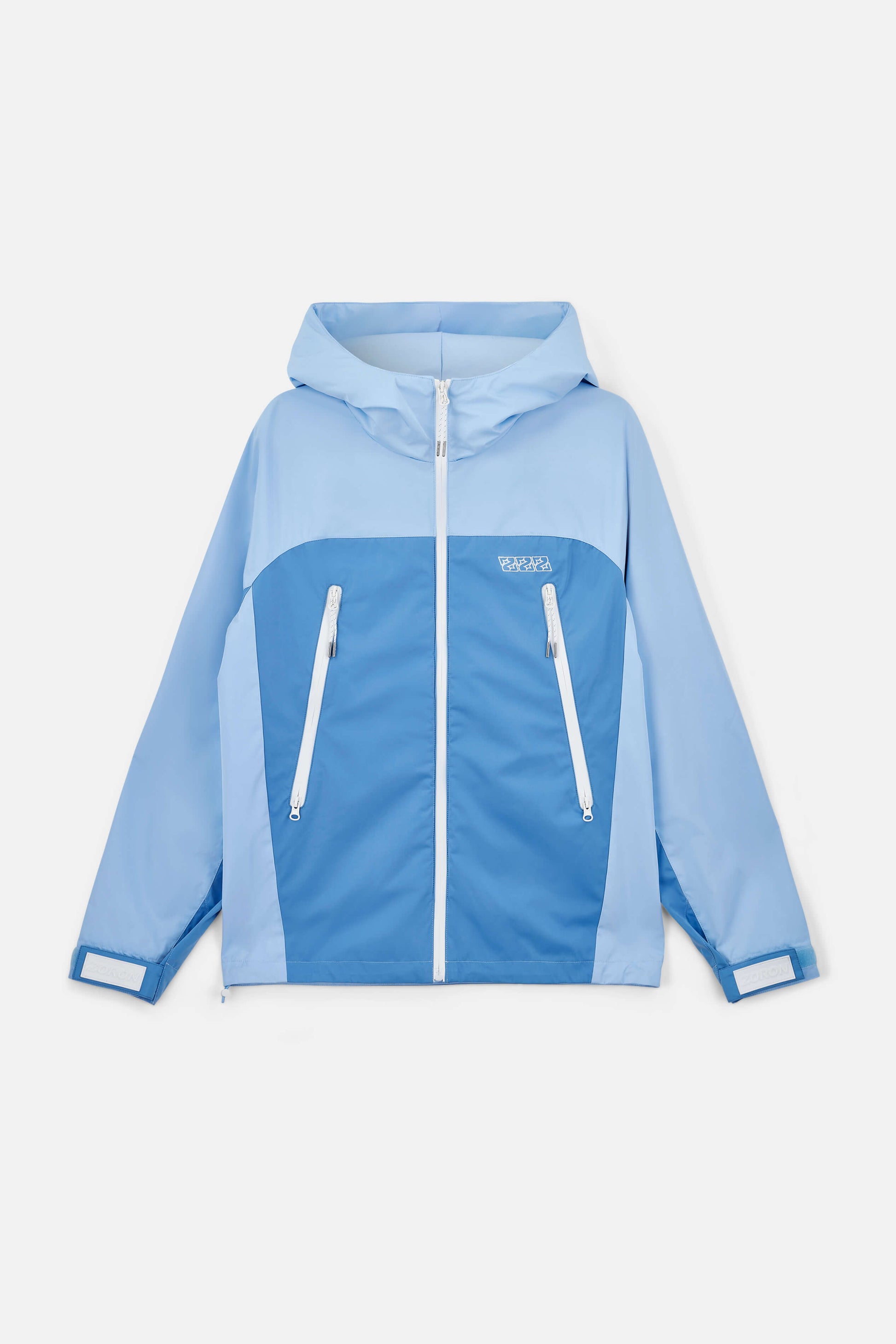 Blue Tact windbreaker made from lightweight nylon. Detailed with Triple Z Star embroidered logo on chest, double ended white water repellent zips, white reflective zip pulls and white Zoron logo patch on cuffs.