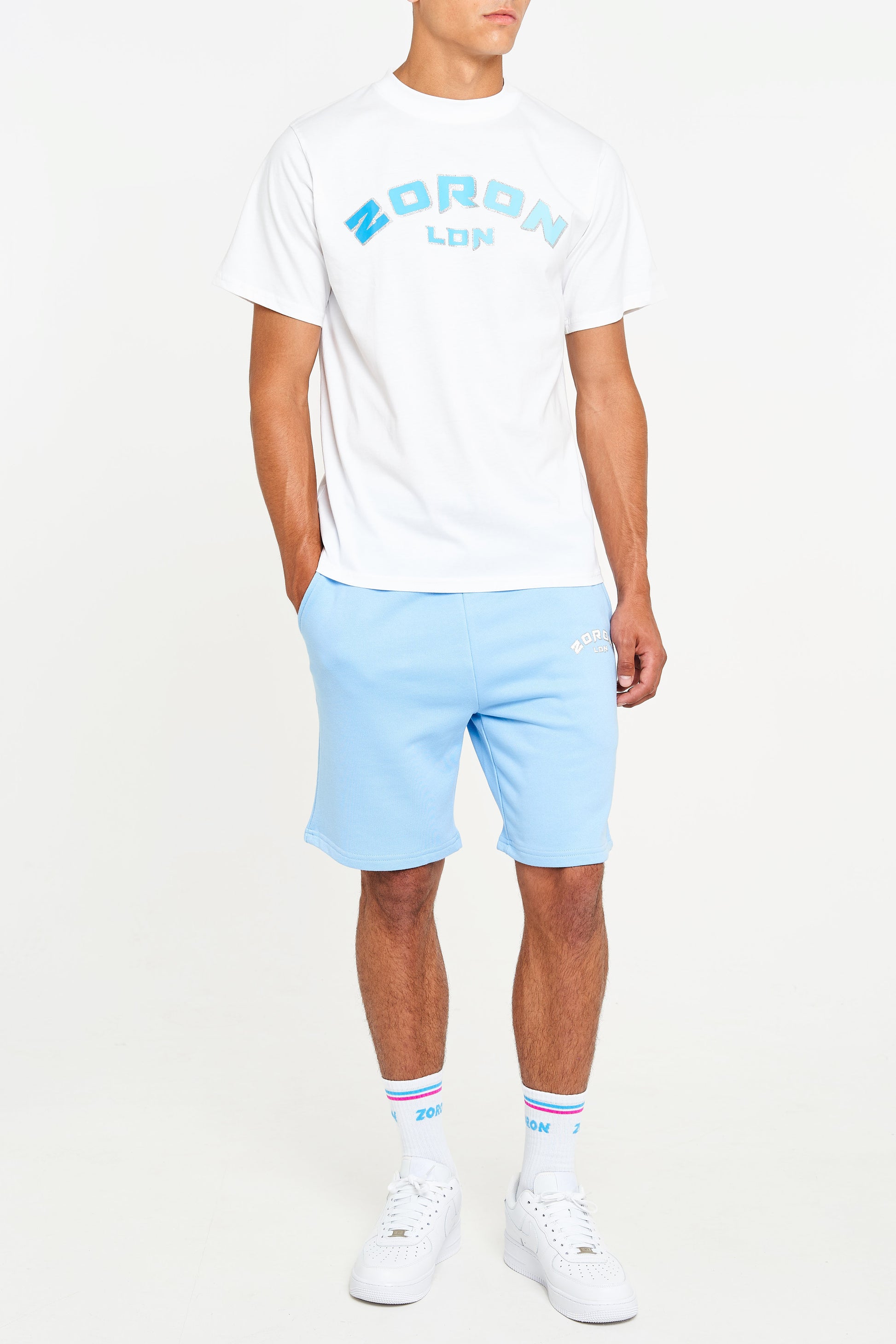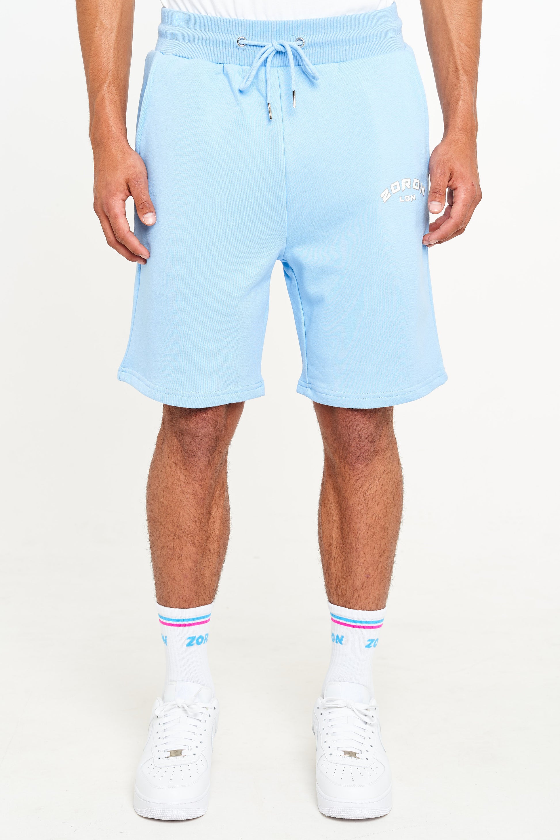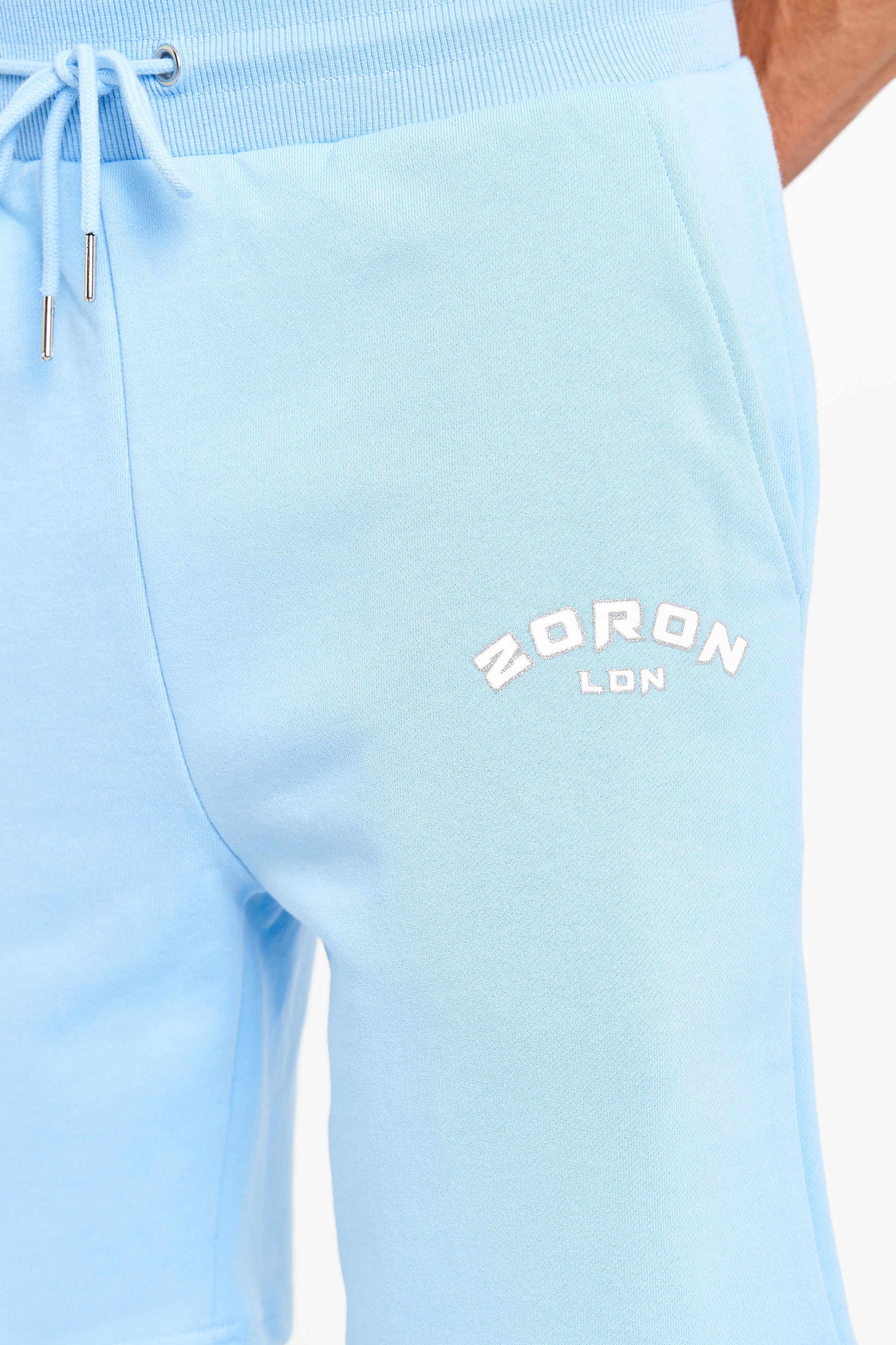 Baby Blue shorts made using a lightweight cotton with a white & shine outline logo print. Elasticated waistband shorts include a signature Zoron metal tab logo on back pocket.