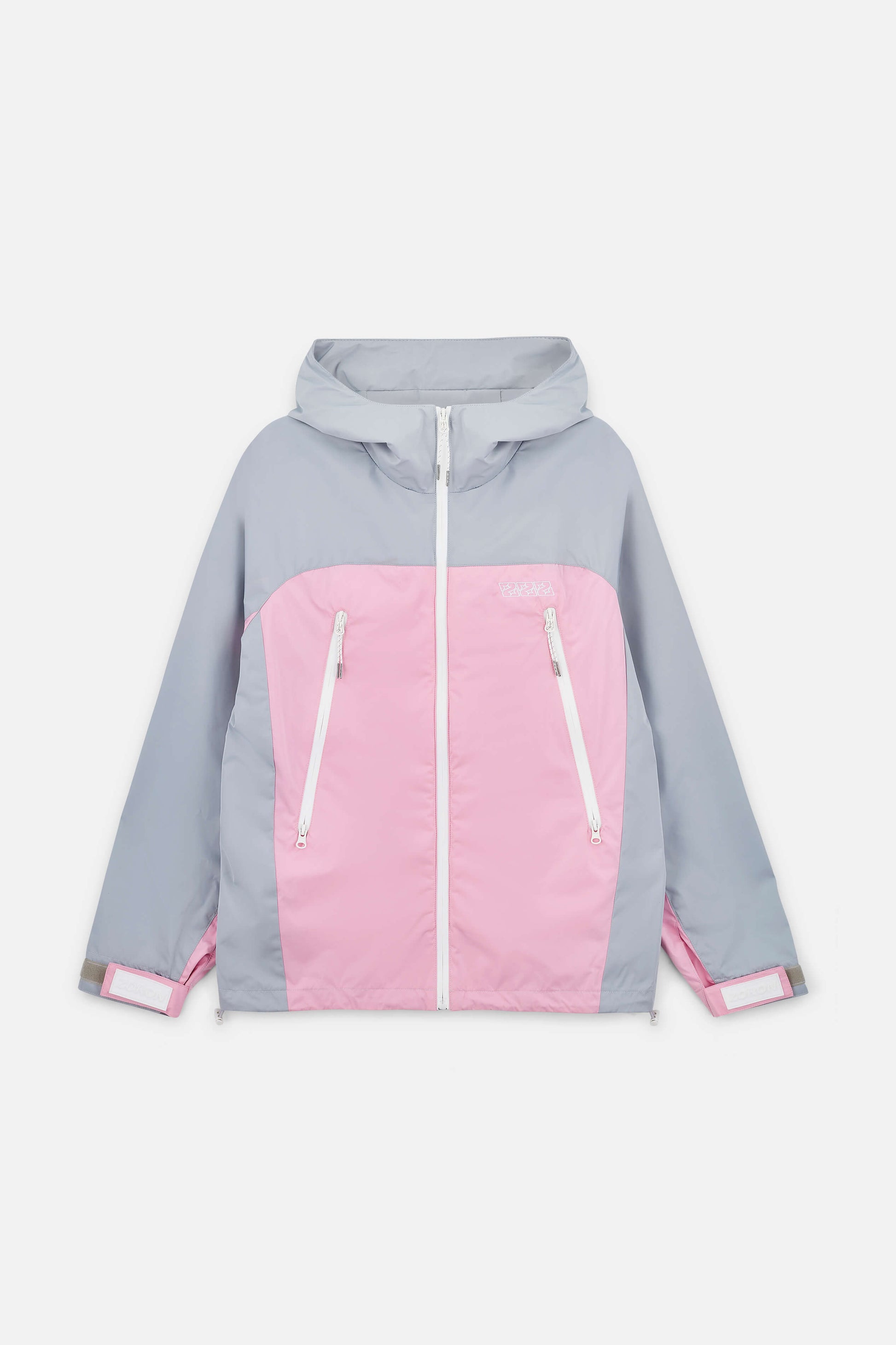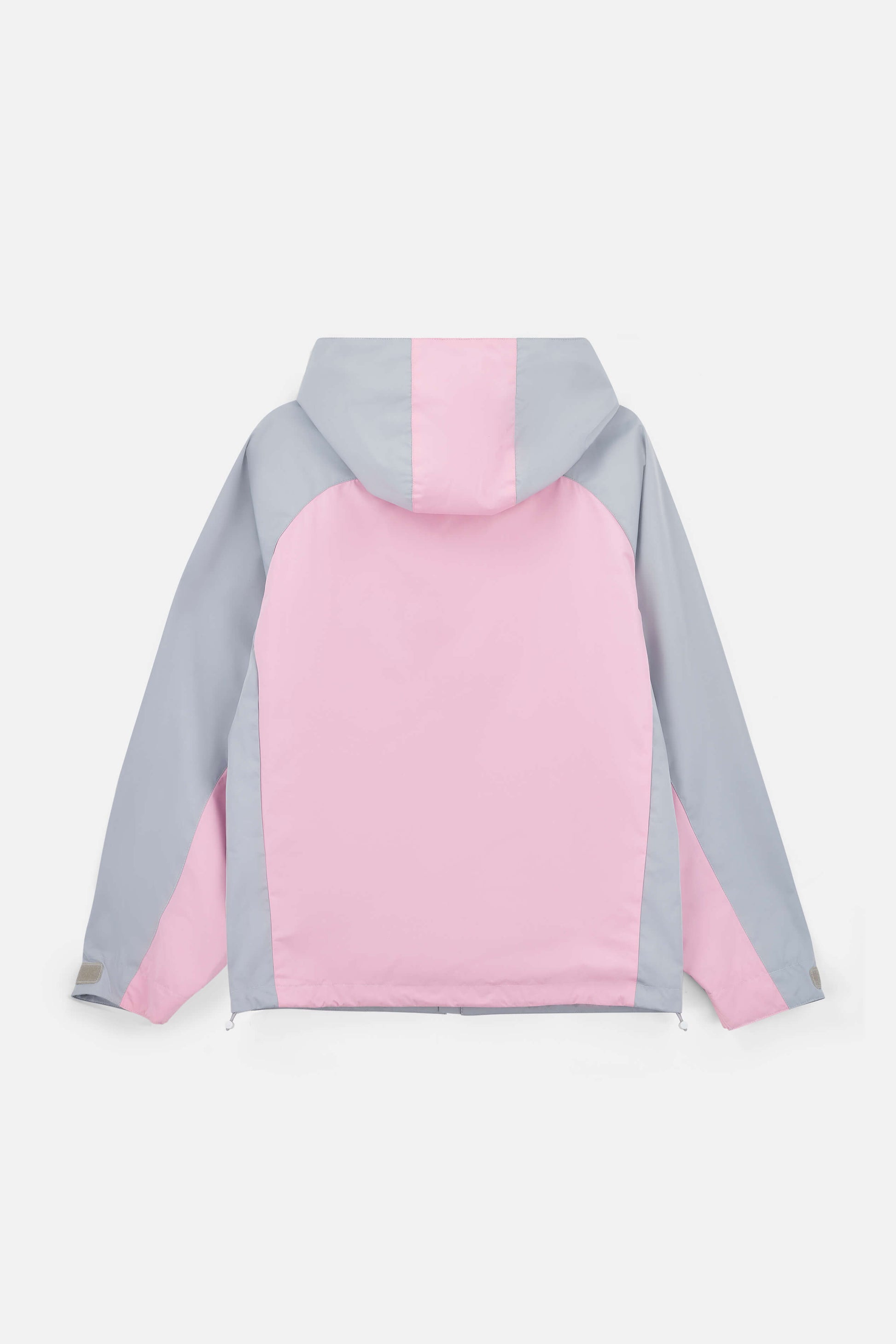 Pink and Grey Tact windbreaker made from lightweight nylon. Detailed with Triple Z Star embroidered logo on chest, double ended white water repellent zips, white reflective zip pulls and white Zoron logo patch on cuffs.